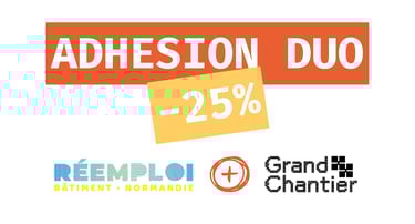 Le Club Réemploi Bâtiment Normandie et Grand Chantier s'associent pour vous proposer une offre d'adhésion duo pour 2026. Si vous adhérez au 2 structures, vous bénéficiez d'une réduction de 25% sur le montant des deux cotisations.